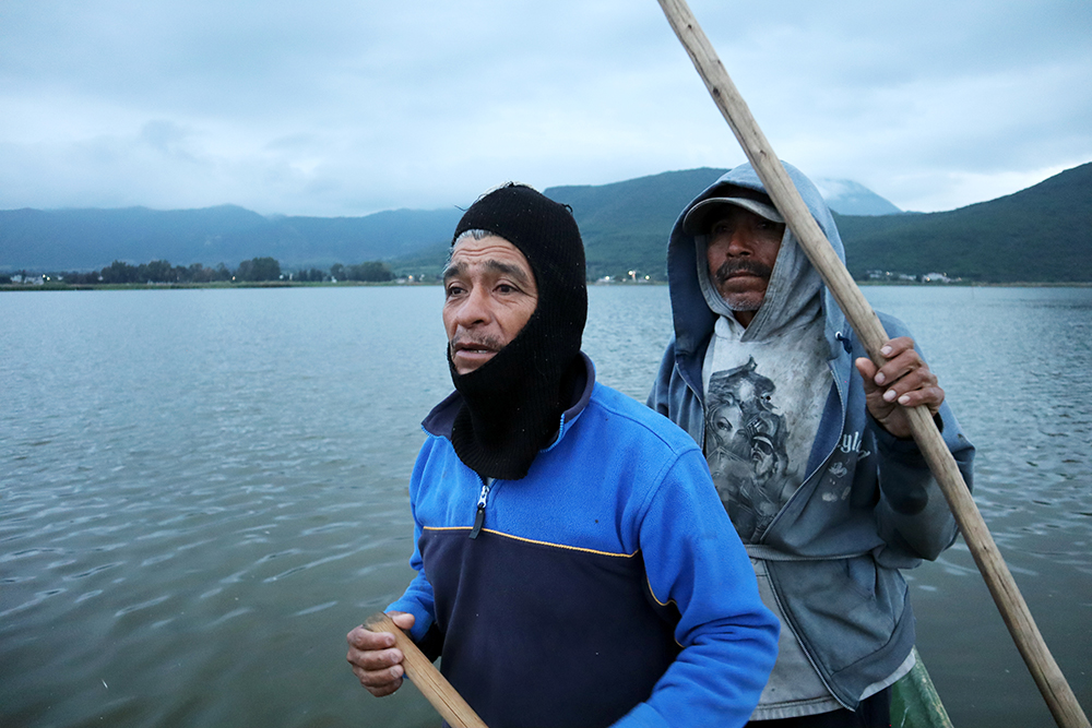 Texto: Omar Cuiriz / Fotografía: Christian Hernández, Omar Cuiriz Por la experiencia que les han dejado las generaciones, los pescadores que navegan a diario estas aguas, aseguran que el lago volverá a llenarse. Mantenerlo, depende de todos Las crudas imágenes que muestran el desierto en el que se fue convirtiendo el Lago de Cuitzeo en los últimos años, corresponden a la parte poniente y centro del cuerpo de agua, son las más visibles por las dos vialidades que atraviesan el lago y que conectan con Morelia. Sin embargo, la parte oriente, donde los estados de Michoacán y Guanajuato comparten el agua, no se ha secado; en esta área, durante la temporada de estiaje, el agua estaba por debajo del metro de profundidad, permitiendo que continúe la vida de peces, aves, reptiles, anfibios, ecosistemas son fundamentales para los procesos ecológicos y que las actividades como la pesca, que dan sustento de las familias, no se paralicen por completo. Esta parte del lago que se resiste a morir, está rodeada por localidades como Irámuco (Guanajuato), Araró, San Bartolome Coro (Zinapécuaro), La Mina (Álvaro Obregón) y Queréndaro. La división de aguas que pertenecen a un estado y otro, es delimitada - entre los pescadores - por pequeñas islas. Las cooperativas de pescadores del lago de Cuitzeo están activas con poco más de 20 por ciento de los miembros, quienes se están buscando la vida en lo poco que queda y con la esperanza de que las lluvias les regrese el agua. De los poco más de 500 pescadores de las 5 cooperativas de la tenencia Mariano Escobedo, perteneciente a Cuitzeo, actualmente están pescando entre 100 y 140, el resto se fue a ‘la obra’ En el último año, estos pescadores se vieron obligados a recorrer kilómetros para seguir el agua. En un inicio acudieron al lado de Michoacán, pero cuentan que las estaciones de Queréndaro, San Bartolomé Coro, La Mina, los corrieron: “Somos de Michoacán y los de Michoacán nos corren, nos echaron a la policía y más bien los de Guanajuato no nos han dicho nada. La gente quería pescado y nos tocó venirnos para acá”, cuentan Ruperto Huazano y Leonel Huazano, hermanos pescadores de Mariano Escobedo. https://www.youtube.com/watch?v=4LcpiBim3IY&t=1s Desde finales del 2020 navegan las aguas de Irámuco, nombre que proviene del purépecha que significa colina que entra al lago. En tierras ajenas, desafiando la comodidad de su laguna –como la llaman-, pescan de madrugada de lunes a viernes. Ocupan suerte, pues de ese lado hay poco charal, hay que pagar gasolina y una caseta para ahorrar un poco de combustible. Entre tres y cuatro de la madrugada, salen en una camioneta hasta doce pescadores, a quienes espera una hora de camino. Ya tienen un lugar donde llegar, una entrada entre casas de vecinos de Irámuco en las orillas del lago y donde dejan las lanchas de plástico. Apenas estacionan su automóvil y entre las penumbras se quitan los zapatos y la ropa que estorbe. Son cuatro pescadores por canoa, dos se internan en el agua a píe para empujar unos 300 metros hasta que la profundidad del agua les permita navegar sin problema. Todo está oscuro, las pequeñas lámparas apenas las usan, la experiencia es evidente. Apenas llegan a la distancia correcta y lanzan los tumbos y redes en las que van apareciendo mojarra y charal, principalmente. El permiso de navegar en las ‘aguas guanajuatenses’, tiene una razón histórica y que tiene que ver con la manera en que el agua los inunda o los deja en sequía. Los pescadores cuentan que en esa parte el agua llegaba a rebasar los tres metros de profundidad, lo que dificulta y hace de la pesca una actividad peligrosa, era entonces cuando los navegantes de Guanajuato recurrían a la laguna de Mariano Escobedo -como la llaman- porque ahí el agua está más baja: “cuando aquí está muy hondo, se van a pescar para allá, el pescado gana para allá a nuestras tierras y nosotros allá nunca les hemos dicho nada, al contrario, les ofrecemos hasta casas para que se apoyen, por eso ahora nos dejan a nosotros estar aquí”, cuenta Ruperto Huazano mientras rema la canoa para adentrarse más al lago, de la parte de Iramuco. Así era el ritmo normal del lago de Cuitzeo hasta hace unos años, cuando incluso en la temporada de estiaje, estas dos partes del lago tenían agua. Es un solo lago, sin embargo, para entender la sequía y si se quiere un plan integral robusto y con impacto real, se deben estudiar las segmentaciones en las que el ser humano lo dividió provocando problemas y situaciones particulares y específicas en cada una. Además, al depender no sólo del agua de lluvia en su área sino de la captada fuera de su cuenca en zonas de filtración, le afecta lo ocurrido en estas, como la construcción de inmensos fraccionamientos sobre terrenos que antes eran recarga de acuíferos. Entre las décadas de 1970 y 2000, aumentó la población dentro de la cuenca a más del doble, siendo Morelia, Tarímbaro y Cuitizeo los principales centros urbanos, de acuerdo con estadísticas del INEGI. LAS CARRETERAS QUE LO DIVIDEN La parte central del lago de Cuitzeo está cruzada por dos carreteras, la primera fue la federal número 43, conocida como Calzada del lago de Cuitzeo, en 1982, dividiendo al lago en dos vasos: este y oeste. En 2016, el entonces presiente Enrique Peña Nieto y el –ahora fallecido- Secretario de Comunicaciones y Transportes, Gerardo Ruiz Esparza, acudieron al estado para inaugurar la nueva autopista Pátzcuaro-Cuitzeo, la cual es paralela a la calzada y la segmentó aún más. Una de las principales polémicas refiere al uso de las compuertas colocadas en ambas carreteras y por las que comunidades denuncian que se acapara el agua abriendo o cerrándolas. Tras un recorrido y trabajo de campo realizado por esta casa editorial, se pudo confirmar que la parte central es la más afectada por la sequía y que en la temporada de estiaje, el agua que queda se atrae hacia los extremo