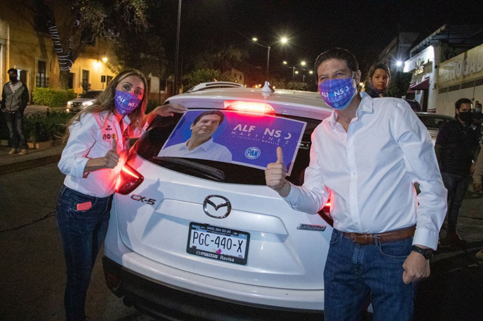 Su inicio de campaña ocurrió en el Jardín de la Paz, en la avenida Nocupétaro, a la medianoche. Un evento con mucha producción, en el que no faltaron los señalamientos a la actual administración, iniciada por Raúl Morón y ahora encabezada por Humberto Arroniz. Mientras el candidato hablaba a sus seguidores, a una cuadra de ahí, en el crucero con la avenida Guadalupe Victoria, decenas de combis se alistaban para lucir las calcomanías promocionales del candidato.