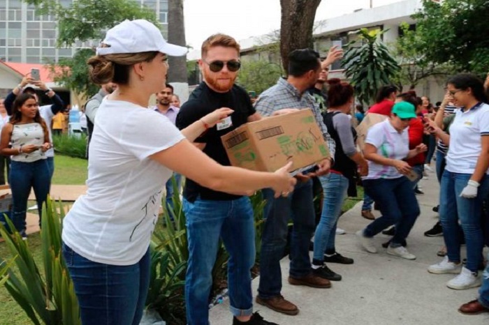 “Canelo” pone su "granito de arena"; ayuda a damnificados por sismo