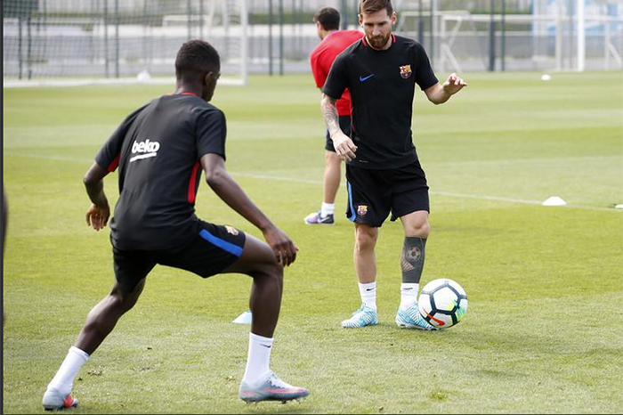 Messi y Dembélé entrenan juntos por vez primera en Barcelona