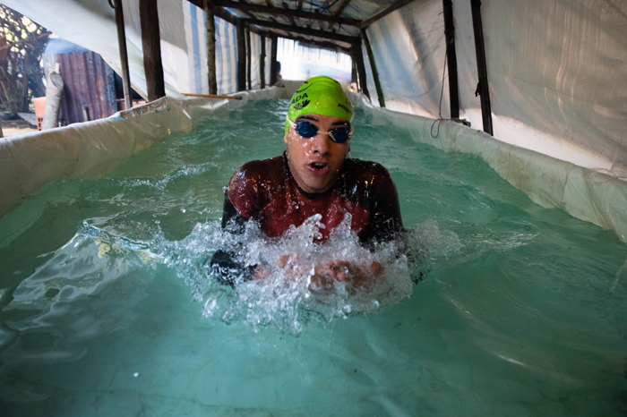 Nadador hipoacúsico improvisa piscina para entrenar en cuarentena