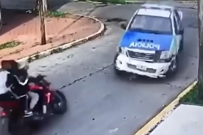 Tres asaltantes intentar huir en moto y sufren fuerte impacto contra patrulla; uno muere