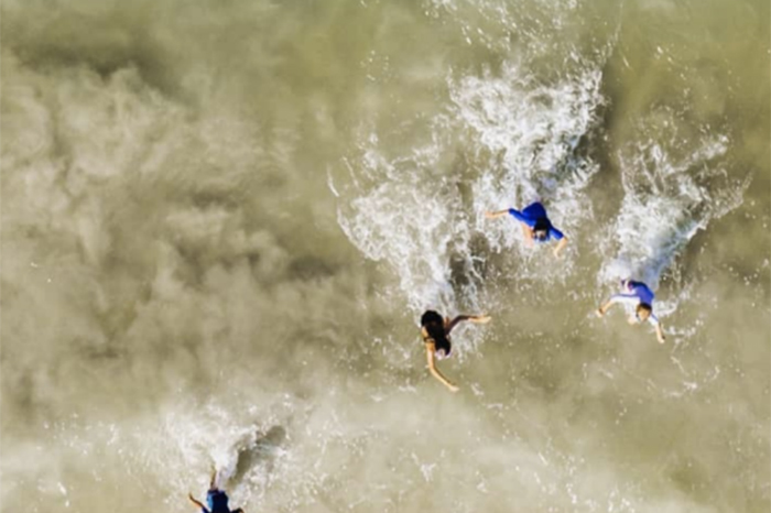 Padre lleva su dron a la playa y capta a un tiburón acechando a sus hijos