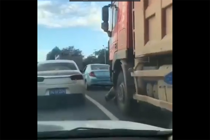 Camión le pasa encima a motociclista y éste sobrevive (video)