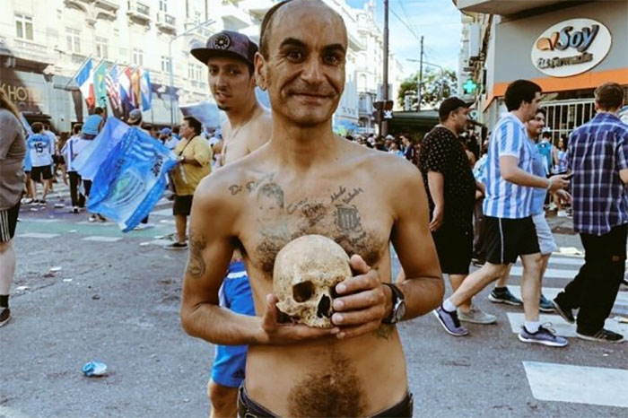 Fan lleva el cráneo de su abuelo a festejos del título de Racing