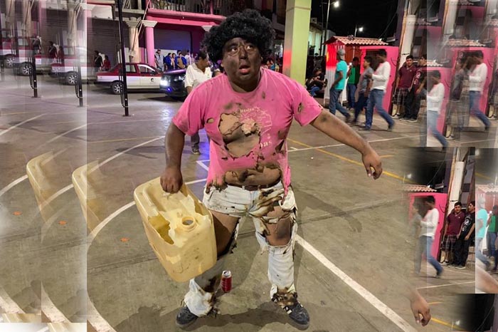 En Oaxaca, se disfrazan de 'huachicoleros' quemados y causan polémica