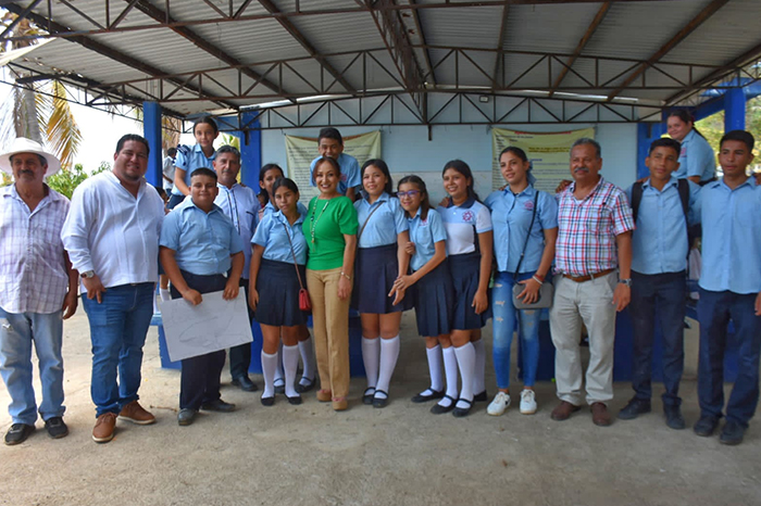 Itzé Camacho entrega obra en secundaria de la tenencia de Caleta de Campos, en LC