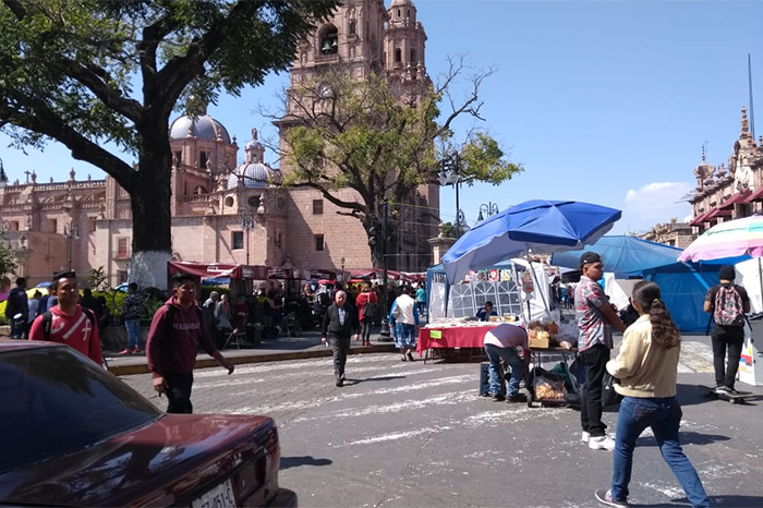 Centro de Morelia, entre puestos de garnacha y casas de campaña