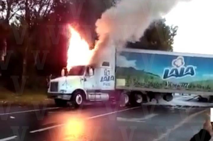 Capacuarenses queman tráiler lechero; llevan 3 vehículos incendiados
