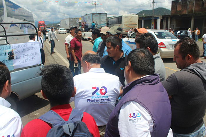Comuneros retienen a candidato del PES; bloquean carretera