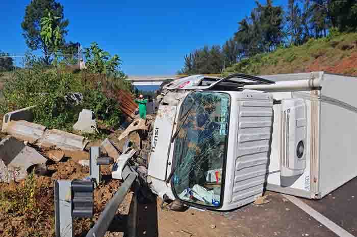 Camión repartidor de Lala sufre volcadura en la Autopista Siglo XXI; el chofer está bien