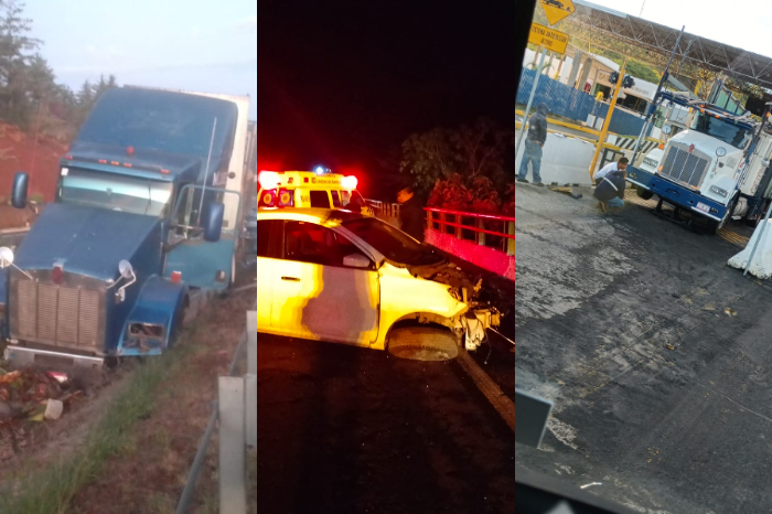 Un tráiler accidentado, otro atorado en sistema anti-evasión y un auto chocado, en la autopista Siglo XXI Leer más »