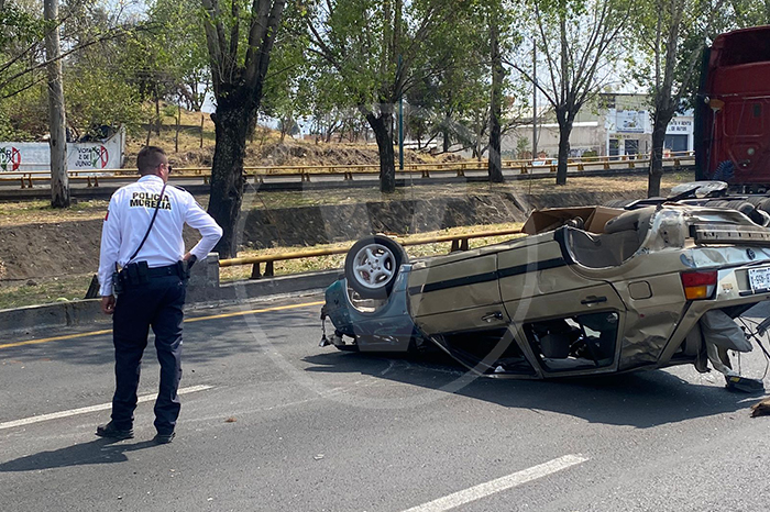 Hombre resulta herido durante aparatosa volcadura en la Uruapan-Paracho