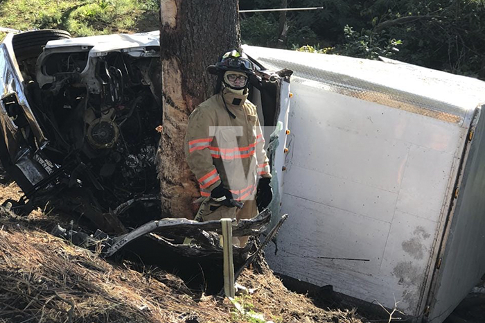 Tráiler golpea a una camioneta en la Siglo XXI y una señora sale disparada hacia un desnivel Leer más »