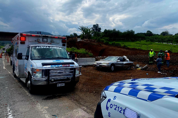 Vuelca taxi sobre la Morelia–Pátzcuaro; hay 2 heridos