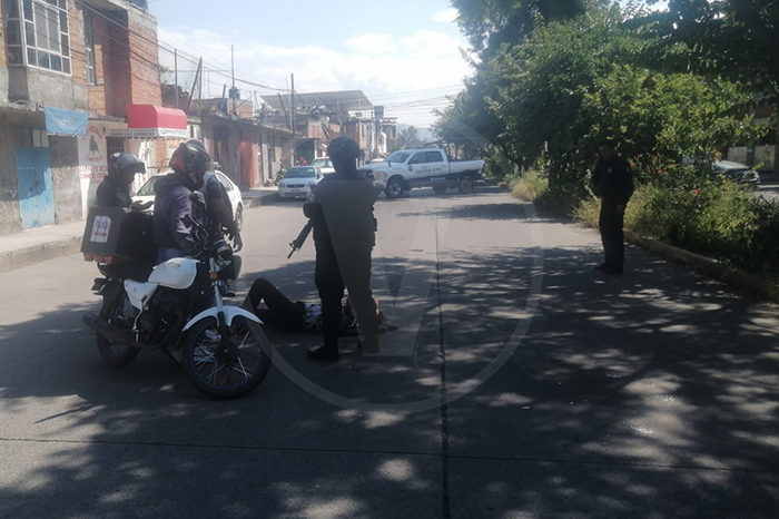 Motociclista sufre caída tras atropellar un perrito en avenida Poliducto, en Morelia