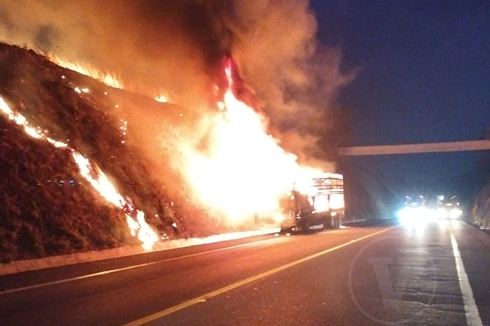 Se incendia contenedor en la autopista Siglo XXI; chofer alcanzó a desacoplar caja