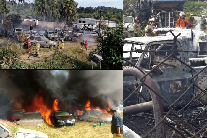 VIDEO | Arde corralón y deja 28 autos calcinados