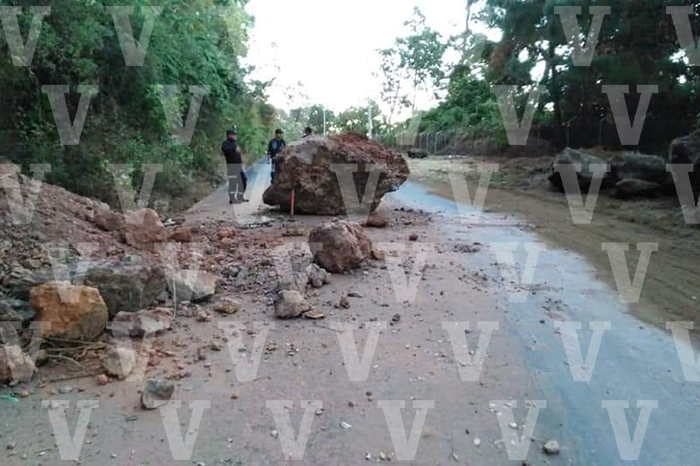 Registran derrumbe de grandes rocas en la carretera libre Tancítaro-San Juan