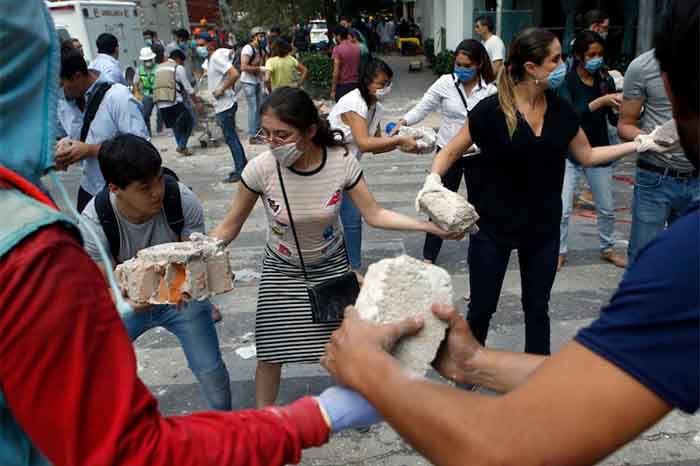 Camiones de pasajeros se suman a operaciones de rescate por sismo