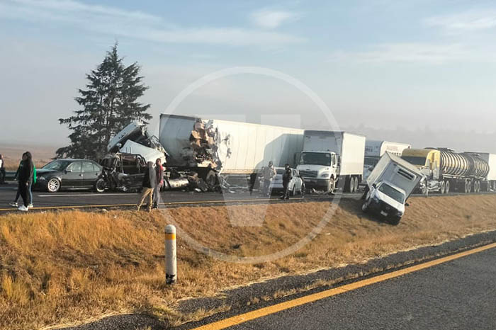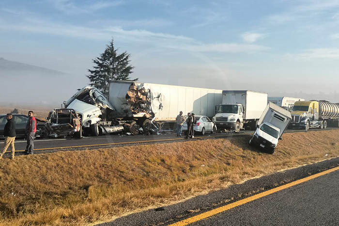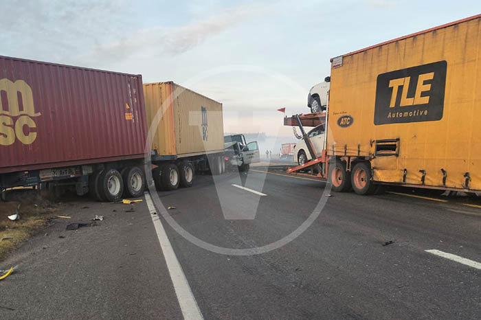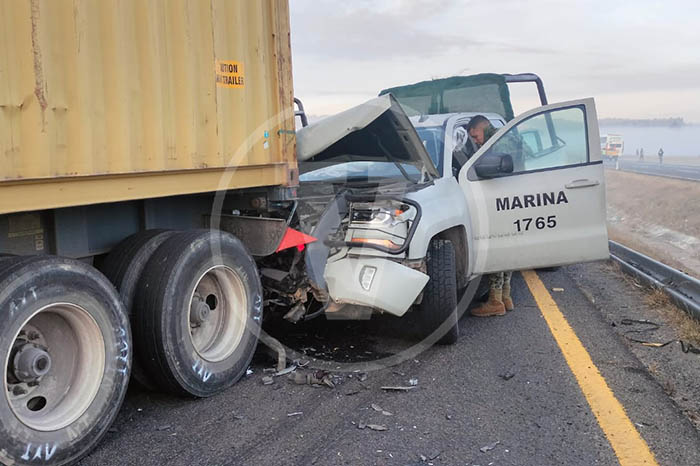 Redacción / La Voz de Michoacán Zinapécuaro, Michoacán. Una carambola vehicular registrada durante la mañana de este miércoles sobre la autopista México-Guadalajara, dentro del municipio de Zinapécuaro, en la cual estuvieron involucradas dos unidades de la Secretaría de Marina (Semar) y varios tractocamiones, dejó un saldo preliminar de un muerto y nueve lesionados. Fuentes allegadas al tema informaron que la persona fallecida era un civil. En cuanto a los heridos, se trata de elementos de la Marina, quienes fueron canalizados por rescatistas al Hospital General de Maravatío para su adecuada atención médica. El lamentable percance ocurrió en las inmediaciones de la población de Ucareo y además obstaculizó la circulación otros carros en la zona. Policías abanderaron el incidente y dieron aviso a la Fiscalía Regional, a efecto de que se emprendan las investigaciones correspondientes.