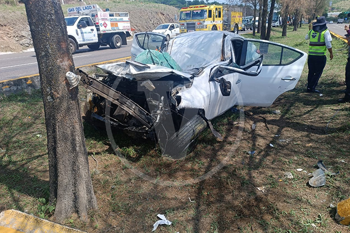 Redacción / La Voz de Michoacán Tarímbaro, Michoacán. Un automóvil chocó contra varios árboles del camellón central de la carretera Morelia-Salamanca; la conductora de la unidad sufrió leves contusiones. El accidente sucedió la tarde de este viernes en el kilómetro 13 de la citada vialidad, a la altura de la población de Mesón Nuevo. Foto: La Voz de Michoacán. El percance fue reportado al número de emergencias, después arribaron bomberos municipales, quienes auxiliaron a la mujer y luego unos paramédicos la canalizaron a un hospital. La identidad de la paciente no fue expuesta, solo se supo que es una maestra de la región de Puruándiro. El auto que manejaba la susodicha es un Nissan Versa, color blanco, el cual terminó destrozado. Unos oficiales realizaron el peritaje correspondiente y pidieron el apoyo de una grúa para retirar el carro siniestrado, el cual fue llevado a un corralón. Foto: La Voz de Michoacán.