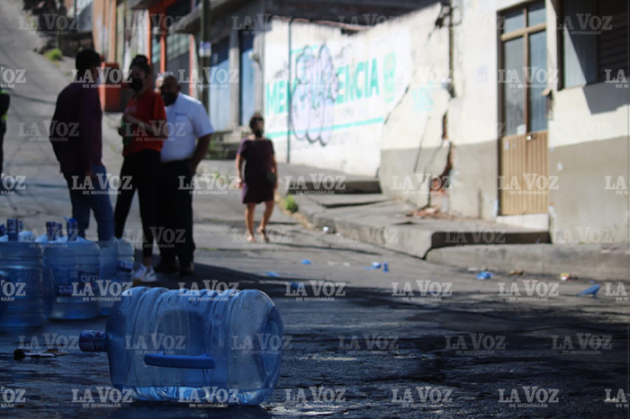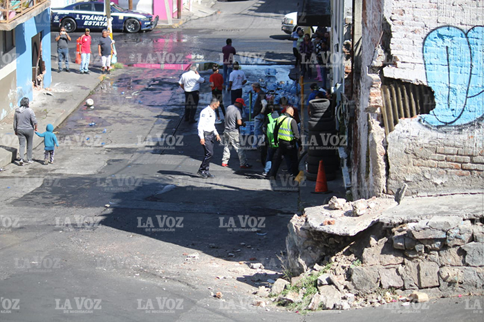 Redacción / La Voz de Michoacán Morelia, Michoacán. Una fuerte movilización de cuerpos de auxilio se registró la mañana de este lunes, luego de que se reportara que un camión se había quedado sin frenos y se impactara contra varias viviendas en la capital michoacana. Los hechos fueron reportados al Servicio de Emergencias (911), donde se alertaba que sobre la calle Salvador Escalante de la colonia Obrera, a una cuadra del Pípila, un camión repartidor de agua “Santorini” se había impactado contra tres viviendas y un vehículo. Al lugar se trasladaron policías y paramédicos, quienes de inmediato acordonaron el área, verificaron los daños y auxiliaron al chofer. En la zona quedaron regados los garrafones de agua, y a simple vista se observan las afectaciones a las viviendas. Foto: Christian Hernández / La Voz de Michoacán Foto: Christian Hernández / La Voz de Michoacán Foto: Christian Hernández / La Voz de Michoacán Foto: Christian Hernández / La Voz de Michoacán Foto: Christian Hernández / La Voz de Michoacán Al parecer el vehículo pesado se quedó sin frenos, lo que obligó al chofer a impactar sobre las viviendas y evitar una tragedia.