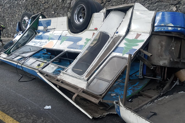 Redacción / La Voz de Michoacán Uruapan, Michoacán. La mañana de este martes, un camión del transporte Público de Uruapan cayó de un desnivel en la lateral de la Calzada Benito Juárez, hacía los carriles centrales, y terminó aplastado sobre su toldo. Preliminar hay 10 personas heridas. Según los primeros datos el autobús de la línea Tata Lázaro con número económico 242, circulaba del Mural de La Quinta hacía la Universidad Vizcaya, cuando perdió el control y se precipitó al vació. La emergencia movilizó al personal de diversas corporaciones de auxilio y patrulleros mismos que de manera coordinada, comenzaron las labores de ayuda. Hasta el momento 10 pasajeros han sido rescatados y trasladados a hospitales de la región. La circulación se mantiene cerrada.