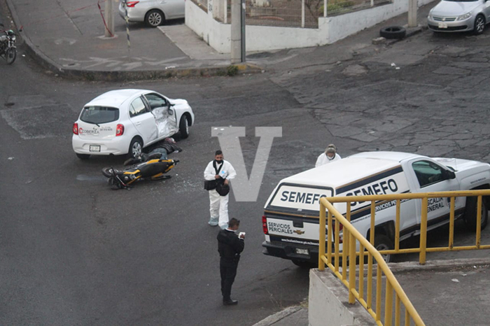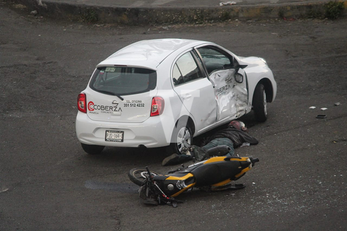 Redacción / La Voz de Michoacán Morelia, Michoacán. Esta tarde, en el Libramiento Norte de la capital del estado, en las inmediaciones del Mercado de Abastos, un automóvil impactó a tres jóvenes que viajaban a bordo de una motocicleta. Por desgracia uno de ellos perdió la vida y su cuerpo quedó tirado entre la motocicleta y el Nissan March de color blanco. Las otras dos tripulantes de la moto fueron trasladadas a un hospital de esta ciudad para recibir atención médica. El accidente tuvo lugar sobre el periférico, sobre el carril lateral que da acceso a los carriles centrales del Libramiento, cerca del distribuidor vial de la salida a Charo y a unos metros de la entrada al Mercado de Abastos en el sentido de oriente a poniente. Trascendió que el finado respondía al nombre de Roberto Casimiro, de 19 años de edad; las sobrevivientes son Diana y Yuritzi, de 15 y 16 años, respectivamente, y los tres viajaban a bordo de una moto de la marca Italika, color negro con amarillo. Las muchachas heridas fueron auxiliadas por paramédicos de la Secretaría de Salud de Michoacán (SSM) y canalizadas a un hospital para su adecuada atención médica. Del coche involucrado en el hecho se supo que es un Nissan March, color blanco, con rótulos de la empresa Coberza y placa PJS164A; del conductor se ignora su paradero. Fotos de Christian Hernández.