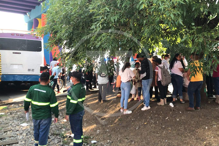 Redacción / La Voz de Michoacán Morelia, Michoacán. La tarde este miércoles se registró un accidente vehicular en la zona de Tres Puentes, sobre la avenida Madero Poniente. A decir de testigos, el chofer de la ruta Centros Comerciales, unidad que además no tenía matrícula, sólo el número económico CC-32, intentó ganarle el paso al ferrocarril, momento en que el camión fue impactado en la parte trasera y empujado algunos metros. Por fortuna el camión no volcó y entre los pasajeros no se reportan lesionados de gravedad, sólo queda en un susto mayúsculo provocado por la imprudencia.