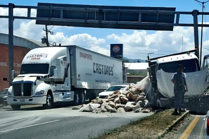 Redacción / La Voz de Michoacán Morelia, Michoacán. - Un camión de plataforma que transportaba varios bultos de cemento chocó contra un camellón central y un poste metálico de un letrero de "Feliz Viaje" ubicado en la avenida Morelos Norte, en la ciudad de Morelia, informaron fuentes policiales y de rescate. El percance ocurrió la tarde de este sábado, en el sentido de la capital michoacana hacia Tarímbaro, en la salida a Salamanca, a la altura de la colonia Los Ángeles, cerca de la calle Acacias. Tras el impacto, parte del cemento terminó regada sobre la carpeta asfáltica, así como el combustible diésel de la unidad. Además el accidente generó bastante tráfico en la zona. El hecho fue reportado por algunas personas al número de emergencias, por lo que posteriormente acudieron patrulleros y paramédicos, quienes valoraron a los ocupantes del referido transporte, mismos que resultaron ilesos. Finalmente, unos agentes de Tránsito realizaron el peritaje correspondiente y solicitaron una grúa para retirar el vehículo siniestrado. En cuanto al cargamento afectado, este fue pasado a otra unidad.