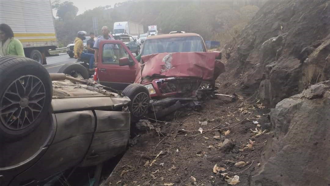 Morelia, Michoacán.- Al menos una persona lesionada y cuantiosos daños materiales, fue el saldo que dejó un aparatoso choque – volcadura entre una camioneta y un auto particular sobre la autopista Uruapan-Pátzcuaro.