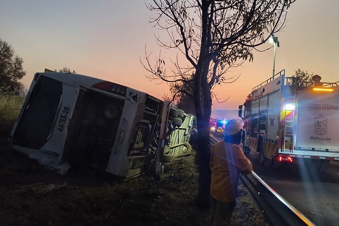 Este sábado la volcadura del autobús de turismo dejó como saldo siete muertos y varios lesionados sobre la carretera Pátzcuaro-Morelia, en el sentido hacia la capital michoacana, informaron autoridades policiales y de rescate.