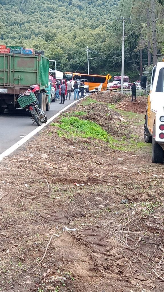 Redacción / La Voz de Michoacán Tancítaro, Michoacán. Un motociclista perdió la vida al chocar contra un autobús de pasajeros en la carretera San Juan Nuevo-Tancítaro, la tarde de este sábado. De acuerdo con la información recabada en la cobertura noticiosa, cerca de las 16:15 horas ocurrió la colisión en las cercanías de la comunidad de Araparícuaro, a la altura del sitio conocido como “El Tepamo”. El choque fue frontal entre un autobús de la línea Galeana de color Rojo con blanco, con placas de circulación 593-HV-8 y número económico 304, así como una motocicleta Italika de color verde con negro. Foto: La Voz de Michoacán. Foto: La Voz de Michoacán. La situación fue reportada al servicio de emergencias, lo que movilizó a oficiales de la Policía Municipal y paramédicos de Protección Civil Municipal, quienes hallaron la moto incrustada en el frente del camión y al motorista tirado a unos metros, lamentablemente ya sin signos vitales. El área fue acordonada por los uniformados y la circulación cerrada al tránsito para que posteriormente el personal de la Fiscalía General del Estado realizara las diligencias respectivas. De forma extraoficial se mencionó que el fallecido respondía al nombre de Rodimiro C., de aproximadamente 38 años de edad.