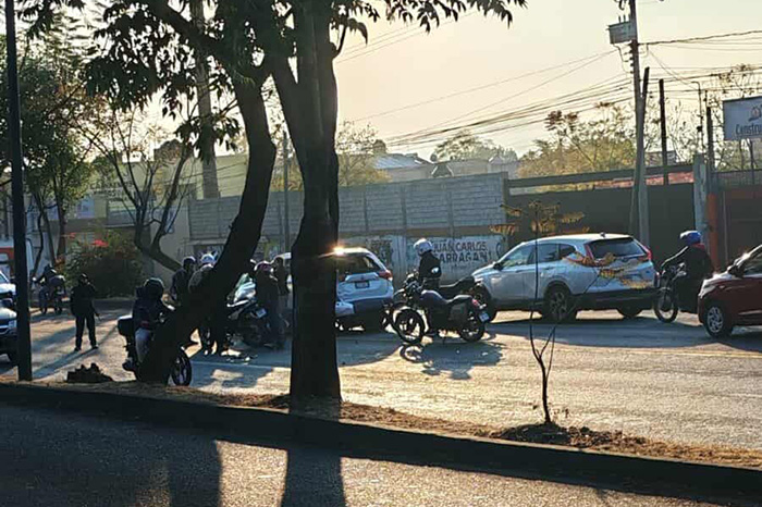 Redacción / La Voz de Michoacán Morelia, Michoacán. Un motociclista resultó malherido tras chocar contra la parte trasera de un vehículo sobre la avenida Francisco I. Madero Poniente, en la ciudad de Morelia, informaron autoridades policiales. El percance ocurrió durante la mañana de este lunes, a la altura de la colonia Tiníjaro, en el sentido de Villas del Pedregal hacia el Distribuidor Vial de Salida a Quiroga. Unas personas reportaron el incidente al número de emergencias, por lo que al sitio acudieron patrulleros y paramédicos, quienes auxiliaron al motorista y lo trasladaron a un hospital para su valoración médica. De manera preliminar, se indicó que el paciente sufrió una probable fractura en la pierna derecha. Agentes de Tránsito realizaron el peritaje correspondiente para deslindar responsabilidades.