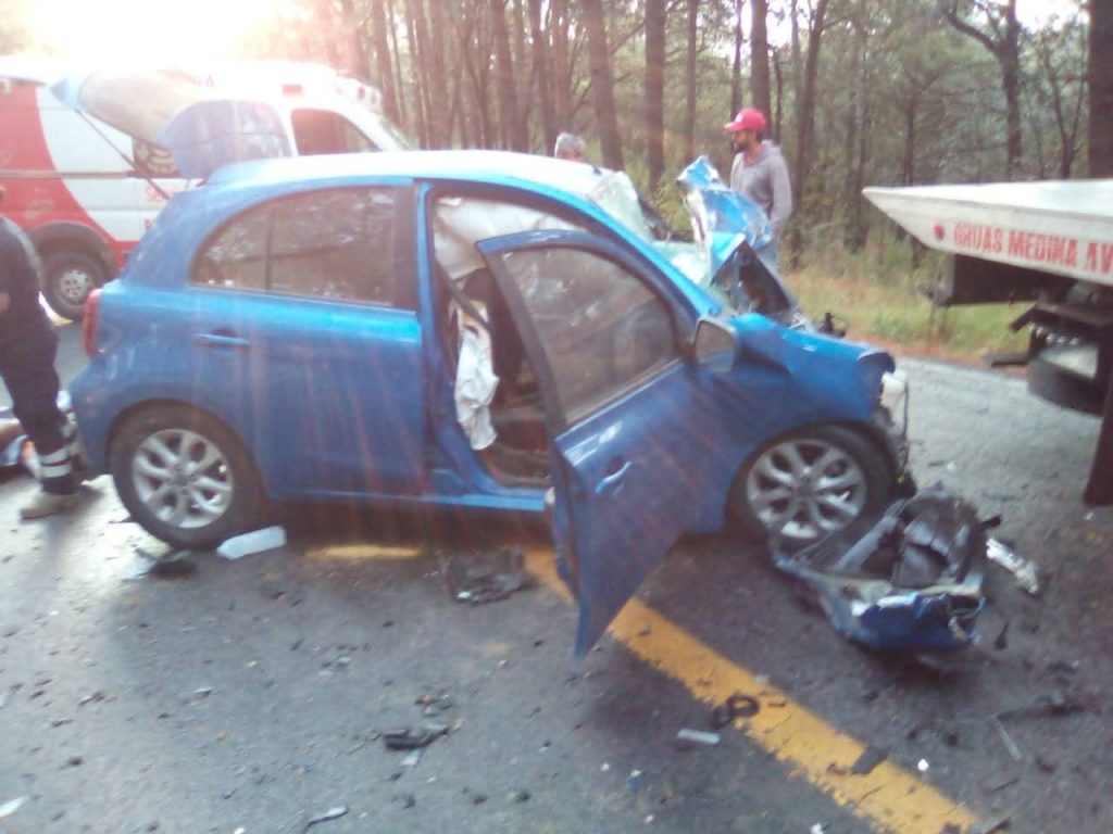 El percance sucedió en el municipio de Zinapécuaro, donde un auto Nissan March quedó destrozado.