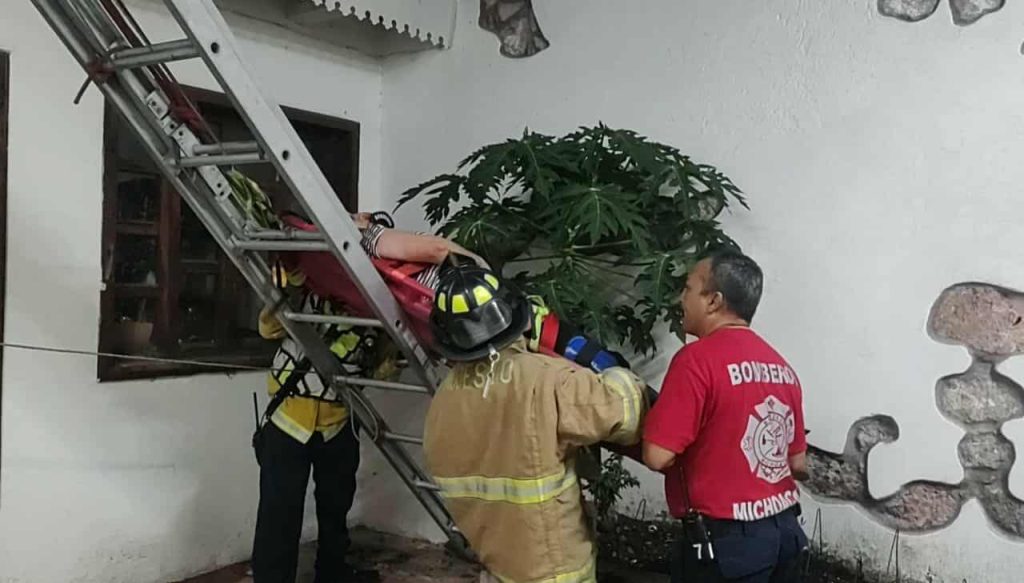 Redacción / La Voz de Michoacán Morelia, Michoacán. - Una mujer de 52 años resultó herida la noche del sábado tras sufrir una caída desde su propia altura mientras se encontraba en la azotea de su domicilio, ubicado en el Centro Histórico de Morelia. El incidente ocurrió en una vivienda de la calle San Bartolomé de las Casas, donde la víctima, identificada como Sonia Maritza, sufrió una probable fractura en el tobillo. Elementos de Bomberos Voluntarios de Michoacán IAP acudieron al lugar para brindar auxilio. Utilizando una camilla y cuerdas de rescate, lograron descender a la mujer desde la azotea hasta el patio del inmueble, donde fue atendida por paramédicos y posteriormente trasladada a un hospital para su valoración médica. Autoridades reiteraron el llamado a extremar precauciones al transitar en zonas elevadas dentro del hogar, especialmente en viviendas antiguas o con superficies irregulares.