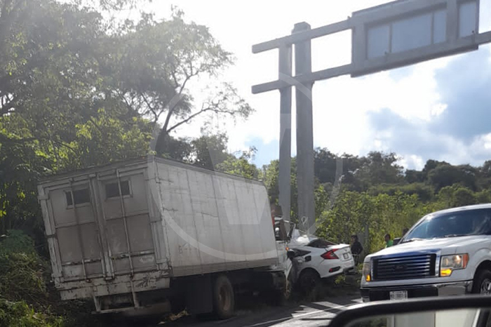 Redacción / La Voz de Michoacán Uruapan, Michoacán. Un nuevo accidente ocurrió en la Autopista Siglo XXI, en el que un camión tipo rabón embistió a un auto compacto y lo proyectó contra la base de un señalamiento vial, debido a la colisión fallecieron dos personas y una más resultó lesionada. El fatal incidente tuvo lugar la tarde de este sábado, en la desviación hacía Uruapan y Lázaro Cárdenas, donde la pesada unidad aparentemente invadió el carril contrario al que circulaba, chocando contra un Honda, Civic, color blanco, con placas NBG-17-01 del estado de Guerrero. Foto: La Voz de Michoacán. Luego del fuerte choque la unidad particular terminó destrozada, entre el frente del camión y un señalamiento vial, momento que el chófer del rabón aprovecho para descender de su unidad y huir. Otros automovilistas, al percatarse de la gravedad del accidente dieron aviso a las autoridades, lo que movilizó a los bomberos de Rescate Uruapan y de otras corporaciones de auxilio para atender la emergencia. Al revisar dentro del Honda, los socorristas encontraron a dos de sus ocupantes sin vida, en tanto que una sobreviviente fue trasladada de emergencia a un hospital en la cabecera municipal de Uruapan donde quedó internada. De las víctimas se desconoce su identidad. Elementos de vialidad se encargaron de abanderar la zona y posteriormente los integrantes de la Fiscalía Regional de Justicia acudieron para emprender las respectivas averiguaciones.