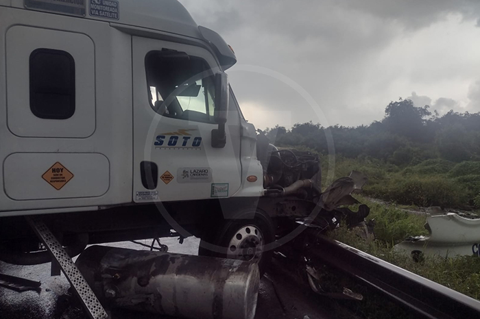 Redacción / La Voz de Michoacán Ziracuaretiro, Michoacán. Un nuevo accidente vehicular se registró la tarde de este miércoles en la autopista Siglo XXI, dejando como saldo una persona sin vida y dos lesionadas. El percance tuvo lugar a la altura del kilómetro 82+000 del tramo carretero Pátzcuaro-Uruapan, donde colisionaron un tráiler con razón social “Soto”, de cabina blanca, con un remolque marrón y auto Ford Mustang, convertible, de color plata y placas PFD-688-U. Foto: La Voz de Michoacán. Las unidades quedaron obstruyendo la vialidad, por lo que de inmediato las autoridades determinaron el cierre de la autopista, mientras que paramédicos de Rescate Uruapan y Protección Civil se trasladaron al sitio para otorgar ayuda. Los socorristas confirmaron el deceso de un masculino a bordo del Mustang, y auxiliaron a dos sobrevivientes que resultaron heridos y los trasladaron has un nosocomio cercano, para su adecuada atención médica. Foto: La Voz de Michoacán. Personal de la Guardia Nacional de la División Seguridad en Carreteras e Instalaciones resguardaron el área de intervención. Más tarde agentes y peritos de la Fiscalía General del Estado emprendieron las correspondientes averiguaciones y posterior levantamiento del cuerpo. De las víctimas se ignora su identidad, de igual forma se desconoce si el conductor del camión de carga fue requerido por las autoridades o se dio a la fuga. Al arribar los servicios de emergencia señalaron que se encontraba una persona fallecida mientras dos más estaban lesionadas las cuales fueron canalizadas a recibir atención médica. La Guardia Nacional también está en el lugar realizando el peritaje respectivo para deslindar responsabilidades. Foto: La Voz de Michoacán.
