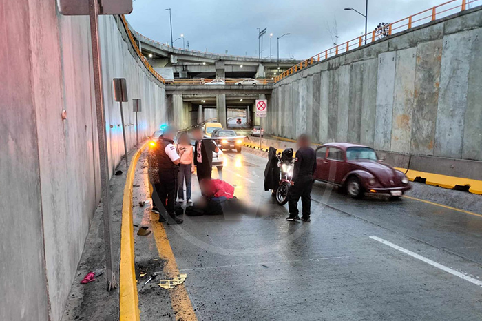 Pareja sufre accidente de moto en el Distribuidor Vial de Salida a Mil Cumbres