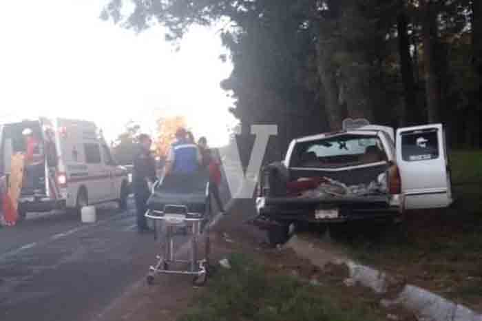 Redacción / La Voz de Michoacán Uruapan, Michoacán. Al menos seis jornaleros quedaron heridos al momento de que la camioneta en la que iban chocó contra un árbol en la carretera Uruapan-Paracho, en este municipio, a donde se trasladaron las autoridades de rescate y policiacas para atender la emergencia. El acontecimiento fue a la altura de la Gasolinera La Guadalupe y el sitio fue resguardado por los elementos de Seguridad Pública para evitar otro percance. Unos paramédicos locales llegaron a la zona y les brindaron los primeros auxilios a los afectados, de quienes los representantes de la ley no revelaron sus generales. Los pacientes fueron subidos a varias ambulancias y enseguida los canalizaron a diferentes hospitales de Uruapan. El vehículo en el que viajaban los trabajadores del campo terminó completamente destrozado y fue remolcado por una grúa que lo llevó a un corralón oficial, ahí quedó a disposición de los agentes de Vialidad. Contactos allegados al caso dijeron que el estado de salud de uno de los lastimados es considerado como delicado. Los guardianes del orden exhortaron a los automovilistas en general a manejar con precaución para evitar tragedias.