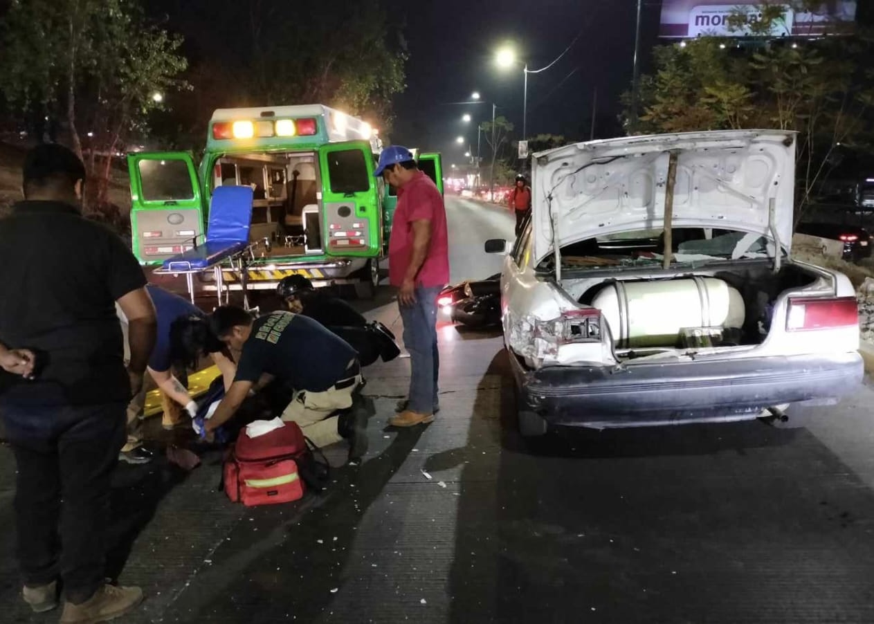 Redacción / La Voz de Michoacán Morelia, Michoacán. En diferentes hechos, dos motociclistas resultaron lesionados sobre el Periférico Paseo de la República, al norte de Morelia, trascendió en la cobertura de la noticia. El primer hecho se registró durante la noche de este miércoles, en la denominada Curva de la Técnica 65, donde el conductor de una moto se estrelló contra la retaguardia de un auto con rótulos de "Taxi Salida a Salamanca". Unos ciudadanos auxiliaron al motorista, quien al parecer sufrió fractura de una pierna y severos daños en un brazo. En el sitio se presentaron paramédicos de Rescate, quienes canalizaron al susodicho a un hospital para su adecuada atención médica. Asimismo, a una distancia de 70 metros sobre la misma vialidad, otro motociclista derrapó, por fortuna no padeció lesiones graves, solo leves contusiones, él fue atendido por rescatistas y al final se retiró por sus propios medios. Unos elementos de la Policía Morelia se encargaron del peritaje correspondiente para deslindar responsabilidades.