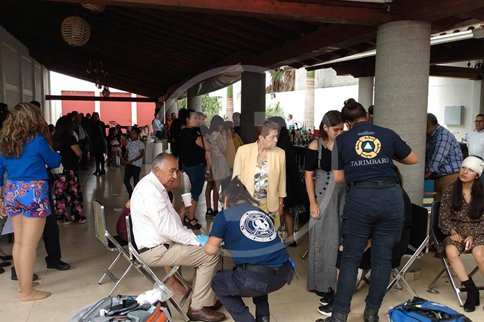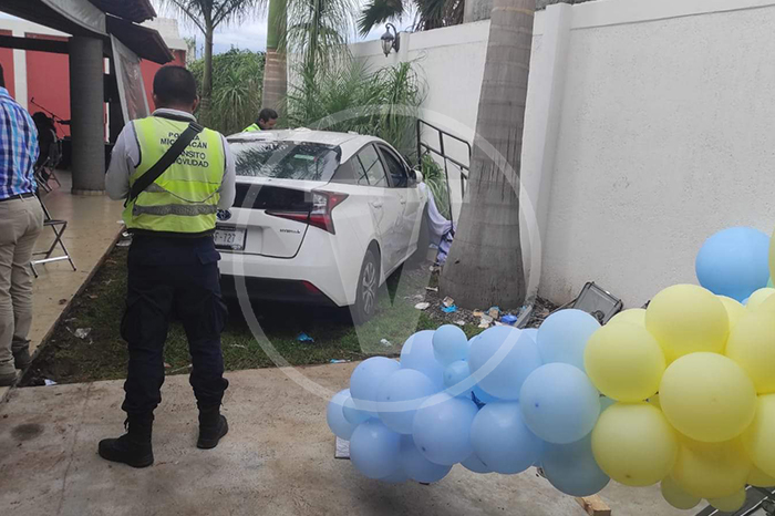 Redacción / La Voz de Michoacán Tarímbaro, Michoacán. Una persona que aparentemente perdió el control de su automóvil, ingresó con todo y su unidad a una fiesta que se realizaba en el municipio de Tarímbaro, con saldo de 11 personas heridas. La emergencia se registró la tarde de este sábado en un salón de eventos ubicado en la comunidad de San José de la Trinidad, donde un grupo de personas convivía y en determinado momento irrumpió un auto de la marca Toyota, de color blanco. Foto: La Voz de Michoacán. A su paso el carro alcanzó a 11 de los asistentes, por lo que de inmediato se trasladaron paramédicos de Protección Civil, los cuales otorgaron los primeros auxilios a los afectados, la mayoría solo presentó golpes leves, pero dos si requirieron traslado a un hospital Al lugar se movilizaron agentes de policía y tránsito para emprender los correspondientes peritajes a fin de determinar responsabilidades. Foto: La Voz de Michoacán.