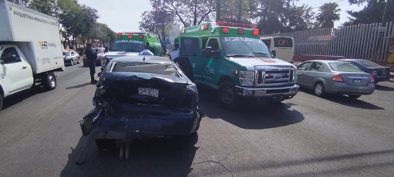 Morelia, Michoacán. Dos vehículos protagonizaron un choque sobre la avenida Madero Poniente de Morelia, el cual dejó daños materiales y dos personas lastimadas.