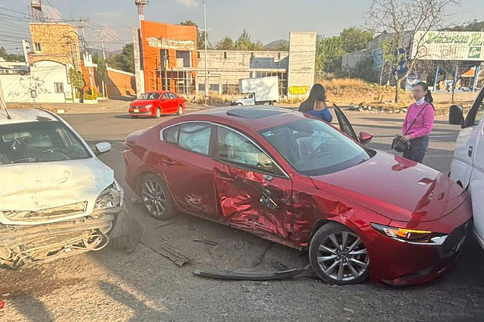 Morelia, Michoacán. Una camioneta tipo combi y dos automóviles protagonizaron un choque sobre la carretera Morelia-Pátzcuaro, a la altura de la desviación a Cointzio, informaron autoridades policiales, las cuales agregaron que únicamente hubo daños materiales.