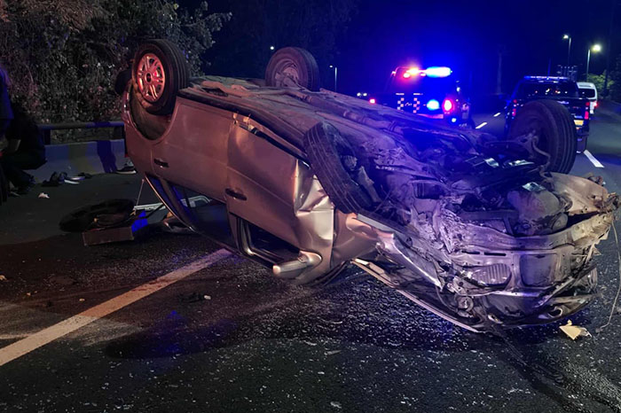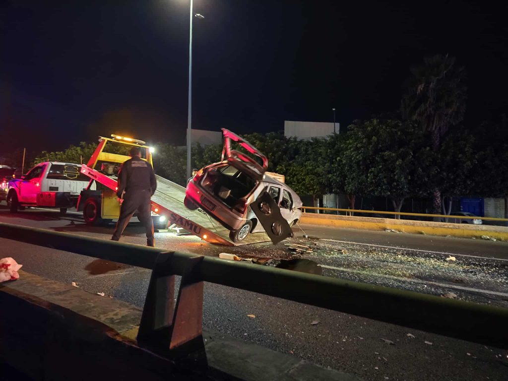 De acuerdo con autoridades policiales, el citado vehículo es un Volkswagen Pointer, color plata, cuyo cofre se levantó durante el trayecto, entonces le obstruyó la visibilidad del conductor, por lo que la unidad se estrelló contra un muro de contención y terminó volcada.