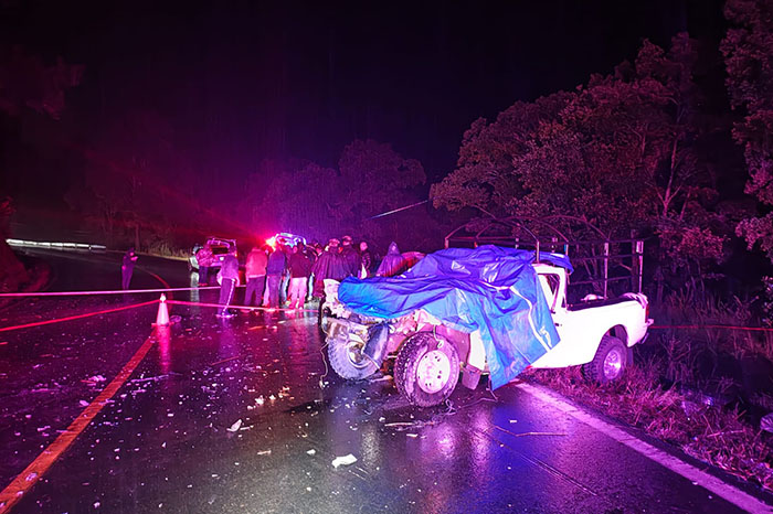 Redacción / La Voz de Michoacán Chilchota, Michoacán. Un fatal accidente vehicular registrado sobre la carretera federal Carapan-Uruapan, a la altura de la localidad de Nuevo Morelos en el municipio de Chilchota, dejó como saldo siete personas fallecidas, entre ellas una menor de edad, así como cuatro personas lesionadas. De acuerdo con la información obtenida por este medio, el suceso fue en el kilómetro 7, donde se localizó un tractocamión de color blanco con cabina roja, el cual se impactó de frente contra una camioneta Ford Ranger, color blanco, con placas NK-5042-A, en la que viajaban las víctimas. La unidad quedó severamente dañada y parcialmente fuera de la cinta asfáltica, entre la maleza a un costado de la carretera. El personal de Protección Civil de los municipios de Chilchota, Nahuatzen y Purépero confirmaron que en el lugar perdieron la vida cinco personas, y dos más al recibir atención médica, todas ocupantes de la camioneta Ford Ranger, mientras que cuatro más resultaron lesionadas, quienes fueron trasladadas a un hospital del municipio de Cherán. Tras el accidente, familiares y comuneros del lugar retuvieron al conductor del tractocamión, señalándolo como presunto responsable del choque, quien al final fue asegurado por la Policía y puesto a disposición de las autoridades investigadoras. El personal de la Fiscalía General del Estado realizó las diligencias correspondientes en el lugar de los hechos, así como el aseguramiento de los vehículos involucrados. Entre las víctimas fallecidas están una niña de un año de edad; un joven de 17 años de edad de siglas C.J.T.; Elizabeth J.; Martín J.; Laura Dolores M.; Juan Manuel J. y Cristina T., mientras que los lesionados son María de Jesús M.; Luis M.; Manuel J. y Jonathan A. Las autoridades continúan con las investigaciones para determinar responsabilidades y esclarecer plenamente las causas del trágico accidente.