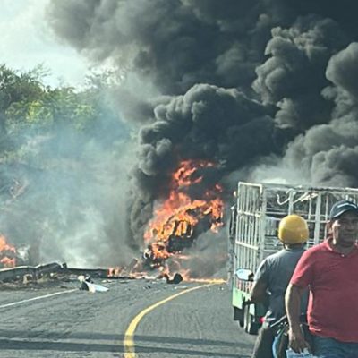 Redacción / La Voz de Michoacán La Unión, Guerrero. El choque de frente entre dos camionetas sobre la autopista Siglo XXI dejó como saldo dos personas lesionadas, mismas que fueron trasladadas en un auto particular a un hospital de la región. Al respecto se pudo conocer que la tarde de este viernes, a la altura del kilómetro 247, en los límites de Guerrero y Michoacán, colisionaron una camioneta Ford F-150 de color rojo y otra unidad de carga con jaula adaptada, ambas acabaron destrozadas luego del brutal impacto. Algunos automovilistas se detuvieron para otorgar ayuda, momentos después arribaron oficiales de la Guardia Nacional, sin embargo los minutos pasaron y debido a que no arriaba ambulancia se optó por subir a ambos conductores gravemente heridos a un auto particular y trasladados a un hospital en Lázaro Cárdenas. La circulación fue parcialmente cerrada para que los federales realizarán el estudio técnico del percance y al concluir las unidades chocadas fueran aseguradas y retiradas con el apoyo de grúas.