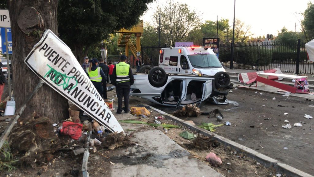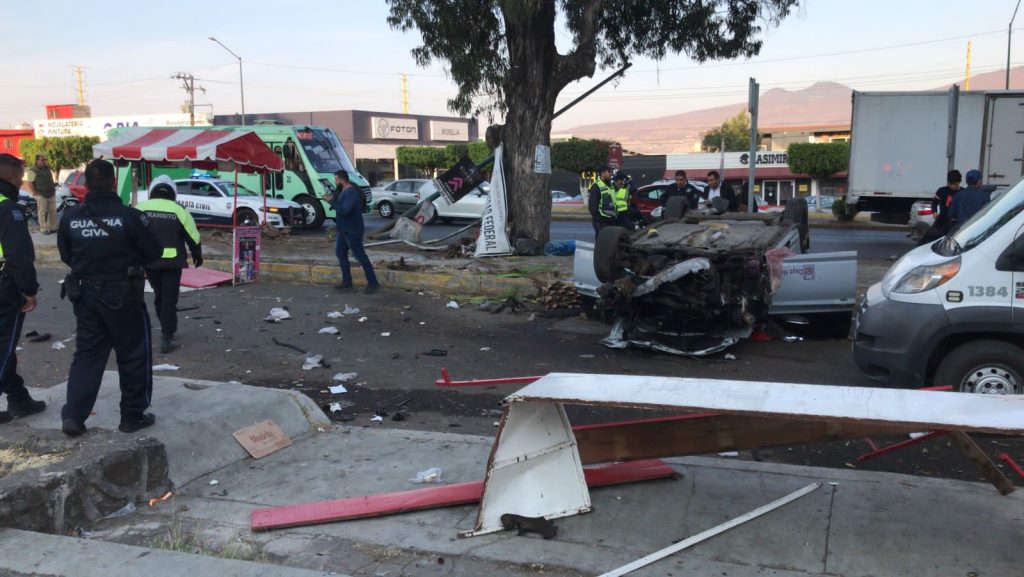 Redacción / La Voz de Michoacán Morelia, Michoacán. De forma milagrosa, un joven resultó con algunos golpes leves luego de que volcara su unidad en la capital michoacana. Los hechos fueron reportados al 911, donde se alertaba que sobre la avenida Morelos Norte, a la altura del Pabellón Don Vasco, un vehículo había volcado. Al parecer el exceso de velocidad provocó que el conductor perdiera el control de la unidad para impactar una palmera, un poste y un puesto ambulante. Al lugar se trasladaron paramédicos, quienes auxiliaron al joven; asimismo, elementos de Tránsito se hicieron cargo de la zona.
