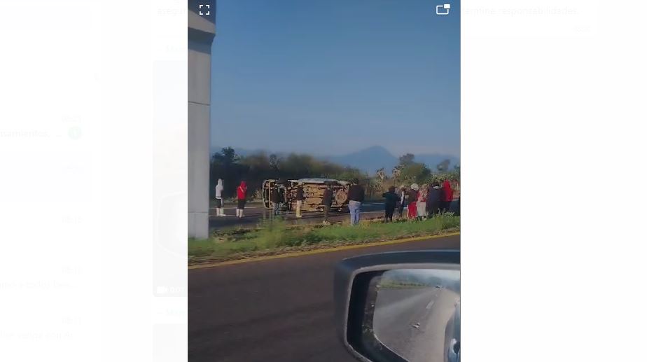 Morelia, Michoacán.- .- La mañana de este sábado se registró la volcadura de una camioneta sobre la carretera Morelia – Pátzcuaro, dejando como saldo preliminar 4 personas lesionadas, mismas que de acuerdo con los primeros sin informes sería jornaleros agrícolas.